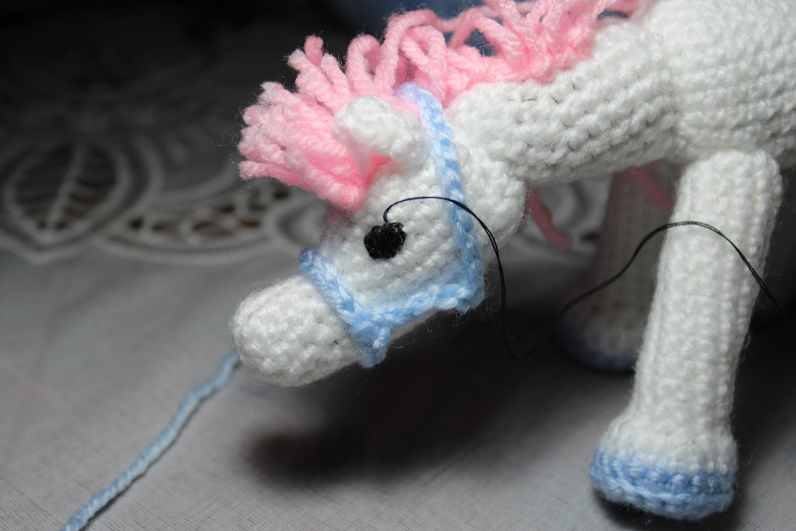 Put the chain around Pony's nose and slip stitch into your first chain and form a loop.
